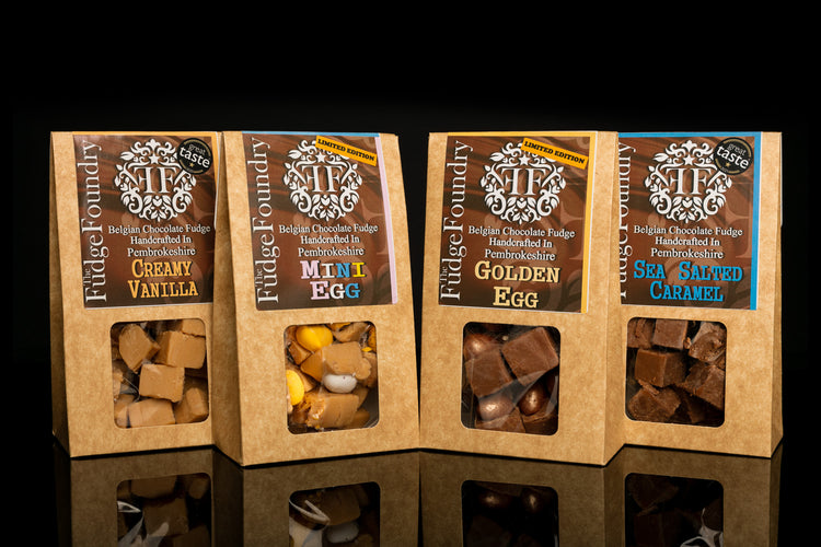 This is your chance to buy all 4 of our Limited Edition Belgian Chocolate Easter Fudge Collection Flavours for one Special Gift Price