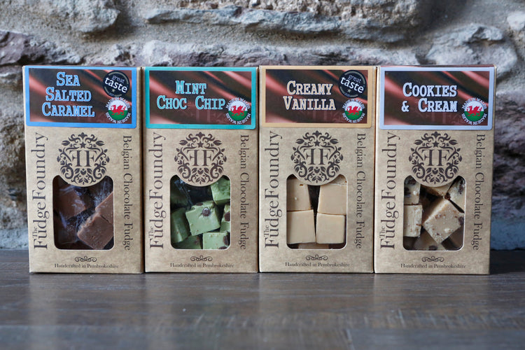 This is your chance to buy all 4 of our Belgian Chocolate Family Favourites Fudge Flavours for one special Gift Price.