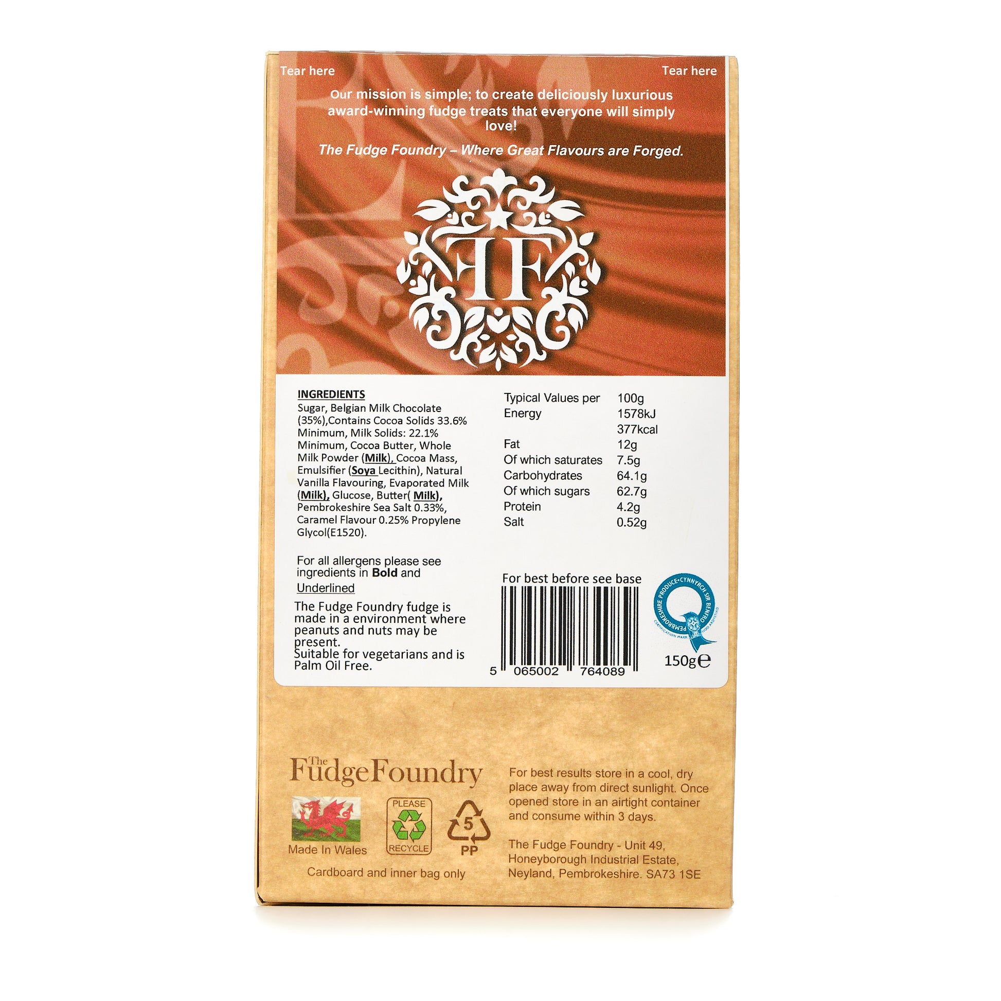 Suitable for vegetarians. No Palm Oil is used in our fudge creations.