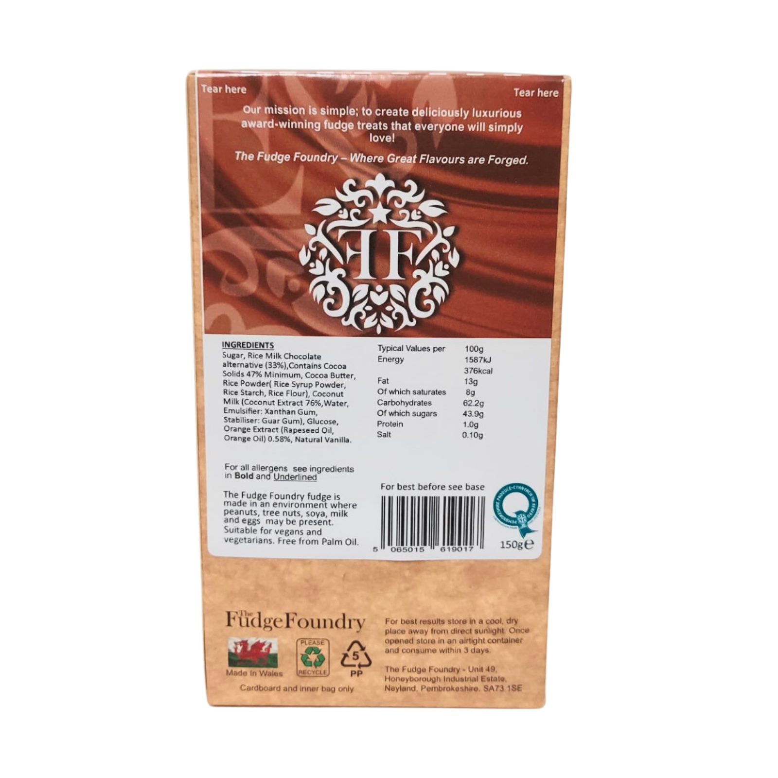 This luxurious handcrafted fudge is made using creamy coconut milk for that delectable taste and made with a lovely vegan alternative to Belgian milk chocolate.